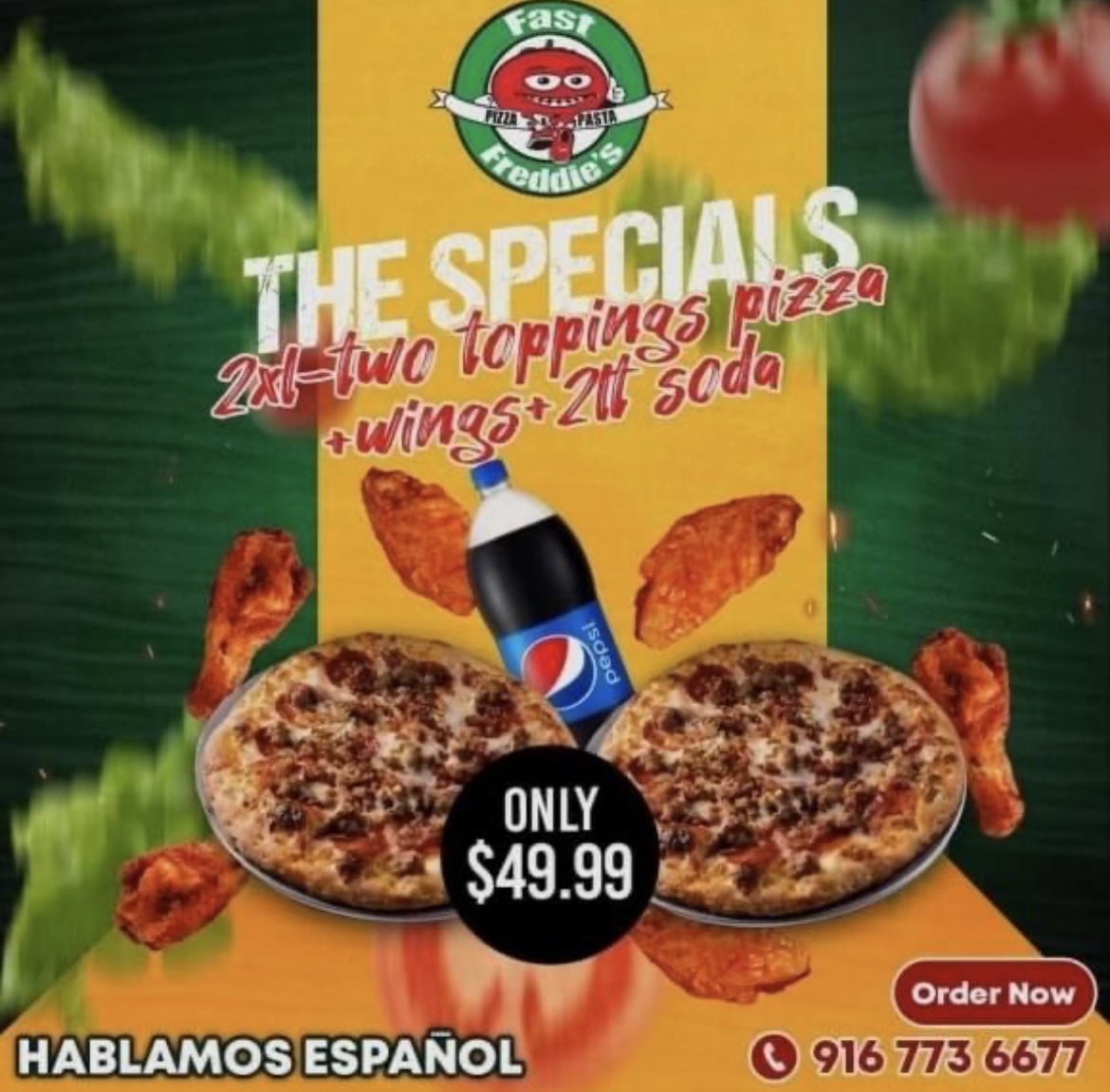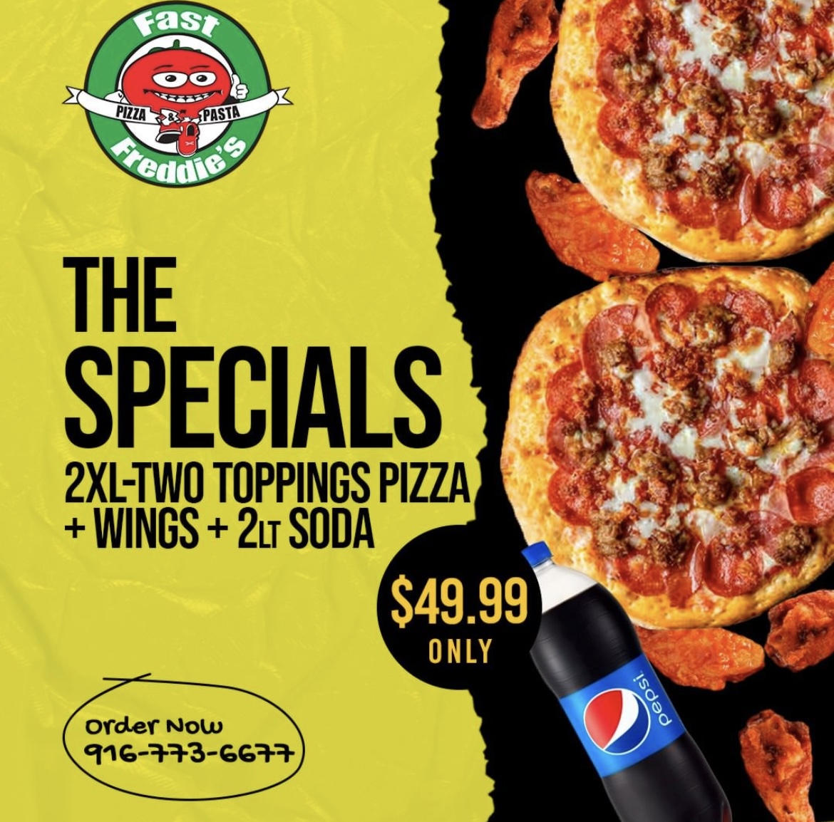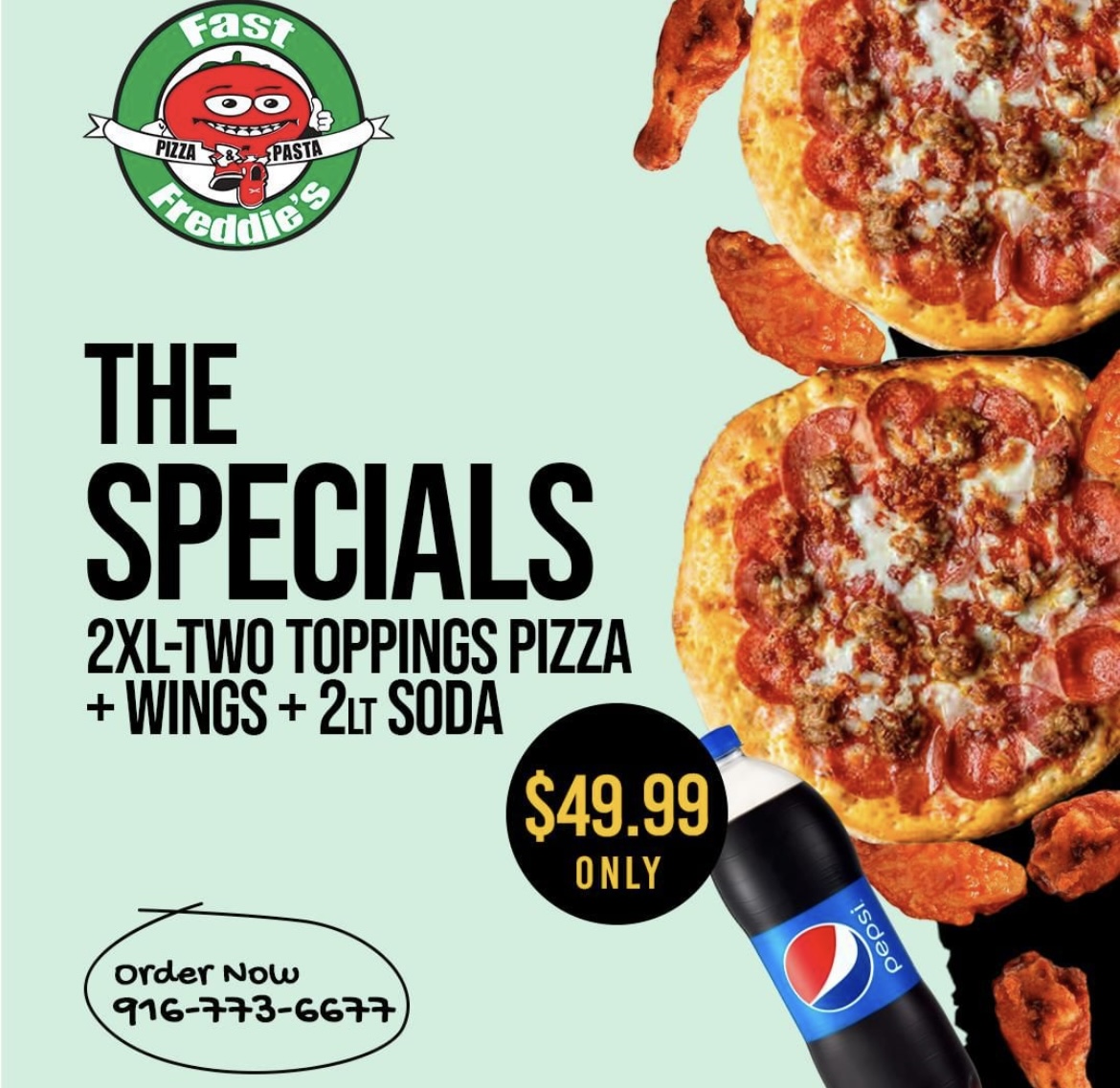 Fast Freddie's Pizza offers a diverse menu catering to various tastes, making it a perfect spot for pizza lovers and more. For those craving a light start, the salads are a solid choice, with options like Antipasto, Caesar Salad, Green Salad, Greek Salad, and Cobb Salad. Moving on to the pizza selection, the Brick Oven Baked Pizza lineup includes delicious choices such as the Freddie Combo, Hawaiian, Meat Lovers, Old Faithful, and Vegetarian pizzas, each bringing its own unique flavors. If you're feeling creative, you can opt for a Create Your Own Pizza, starting with a simple Cheese Only base and adding your preferred toppings. For those looking to complement their meal, the sides menu features tasty options like Buffalo Wings, Pizza Roll, Bread Sticks, Garlic Bread, and Cheese Bread. Whether you're in the mood for a fresh salad or a satisfying pizza, Fast Freddie's has something to suit every craving.